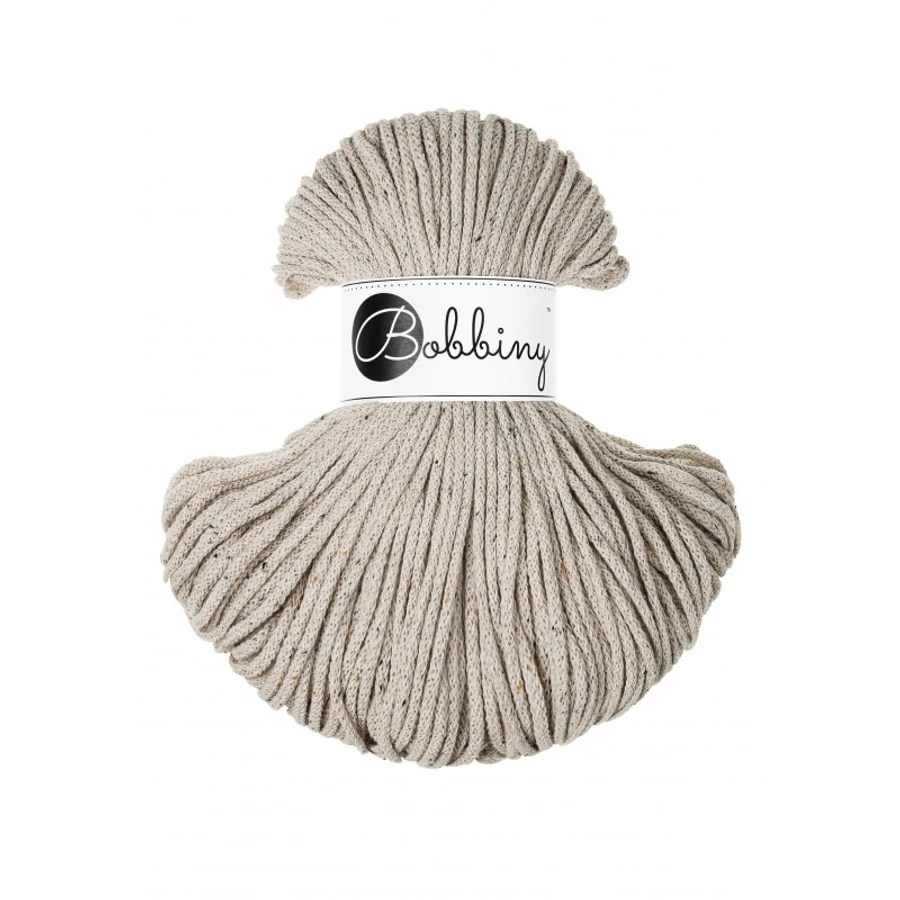 A Bobbiny 3 mm Leopard zsinórfonal egy természetes, natúr bézs alapú árnyalat, amelyet apró, színes pamutszálak tesznek egyedivé. Ez a finoman pöttyözött hatás a felhasznált újrahasznosított textilekből adódik, így minden tekercs egy kicsit különleges és megismételhetetlen.