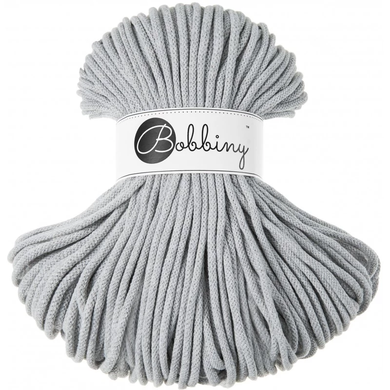 Prémium Bobbiny 5 mm zsinórfonal Light Grey színben, amely ideális választás horgoláshoz, makraméhoz és egyedi kézműves projektekhez. A világos, semleges szürke árnyalat elegáns és időtálló megjelenést kölcsönöz az elkészült alkotásoknak, így tökéletes választás modern és minimalista stílushoz.