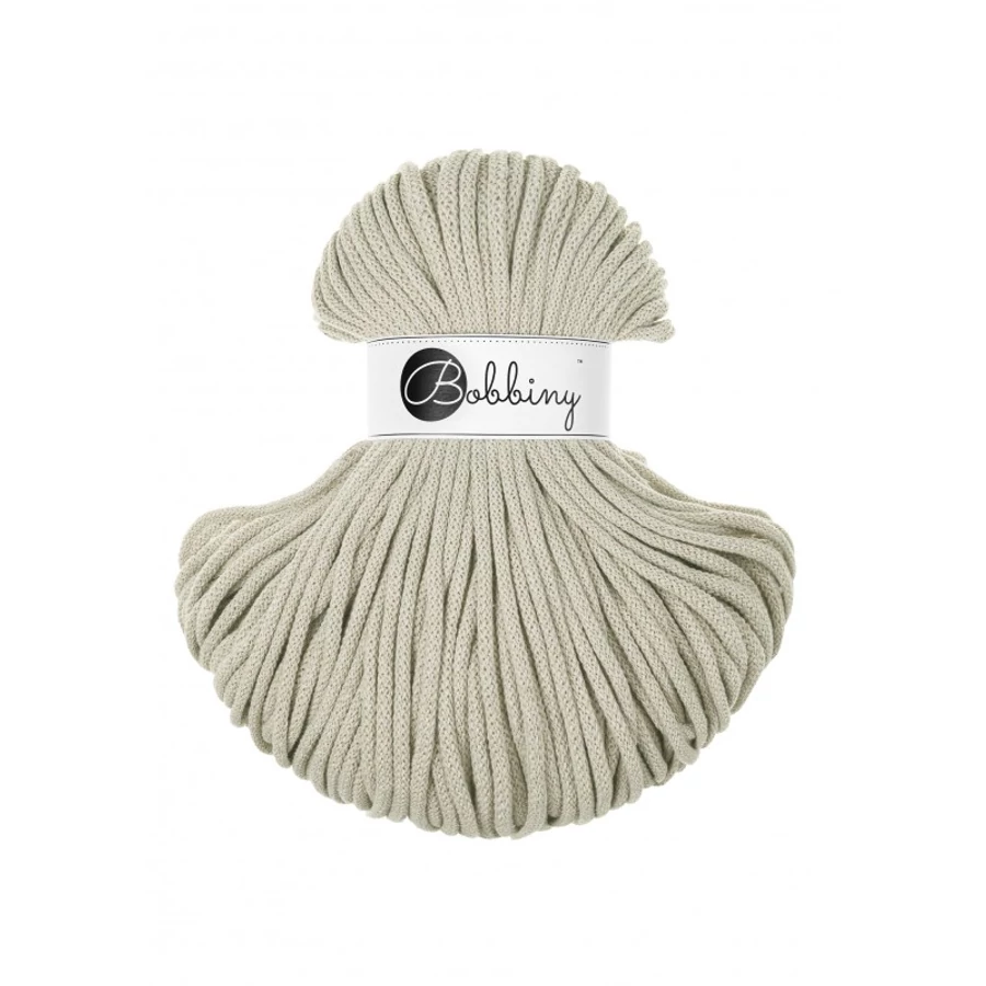Prémium Bobbiny 5 mm zsinórfonal Pale Olive színben, amely ideális választás horgoláshoz, makraméhoz és egyedi kézműves projektekhez. A lágy, természetes zöldes árnyalat nyugodt és elegáns megjelenést kölcsönöz az elkészült alkotásoknak, így tökéletes választás modern és természetközeli stílushoz.
