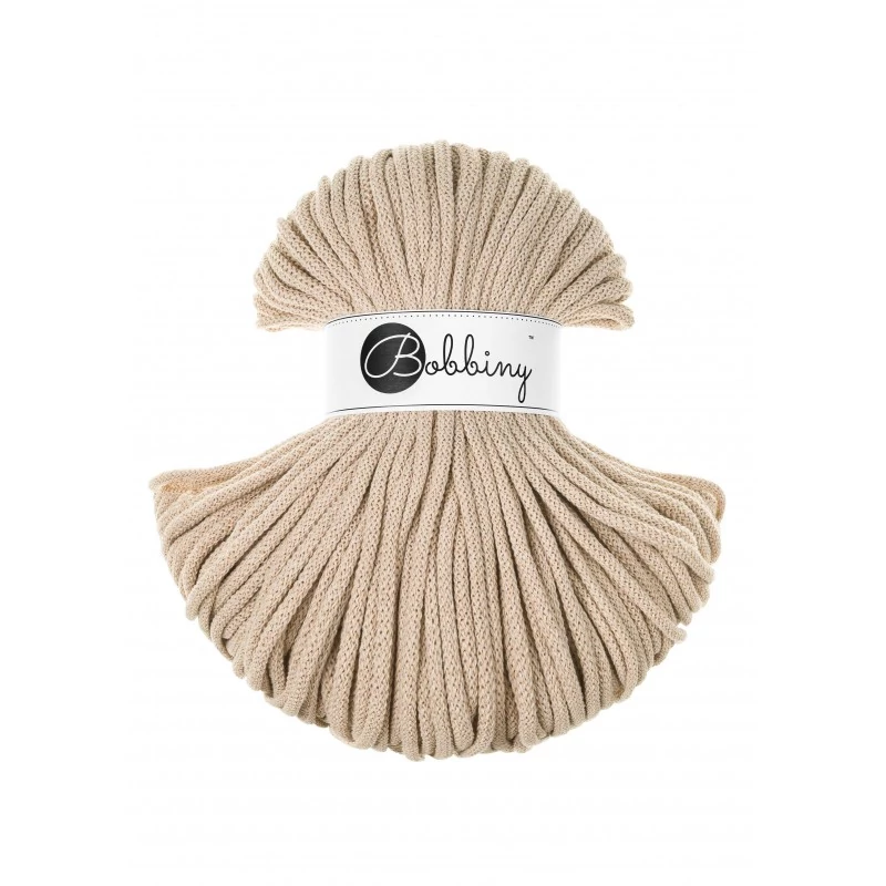 Prémium Bobbiny 5 mm zsinórfonal Warm Beige színben, amely ideális választás horgoláshoz, makraméhoz és egyedi kézműves projektekhez. A meleg, természetes bézs árnyalat harmonikus és időtálló megjelenést kölcsönöz az elkészült alkotásoknak, így tökéletes választás letisztult és természetközeli stílushoz.