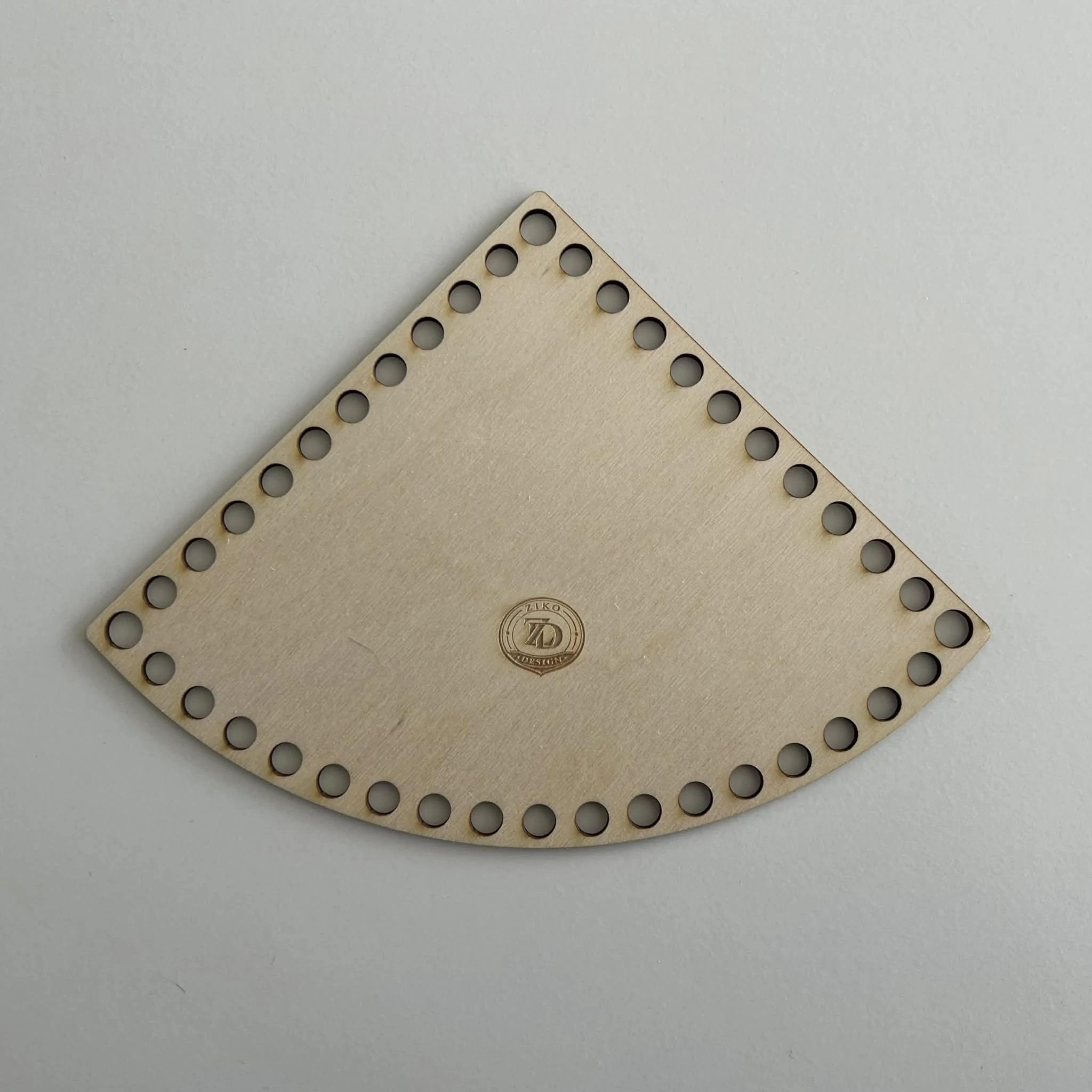 A natúr horgolható fa alap negyed kör formában tökéletes választás különleges és egyedi horgolós projektekhez.