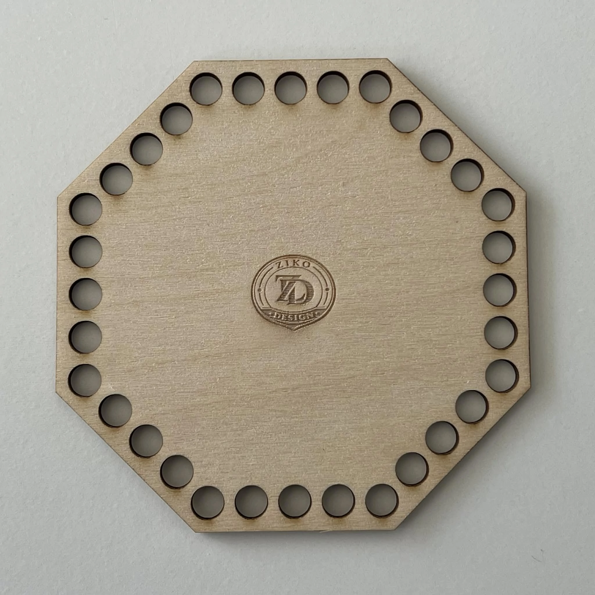 Ez a nyolcszögletű horgolható fa alap tökéletes választás kisebb kosarak, tárolók vagy dekorációk készítéséhez.