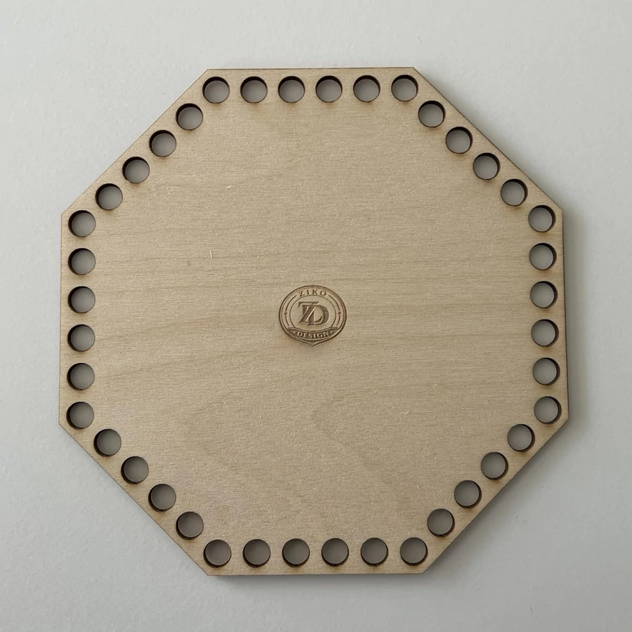 Ez a nyolcszögletű horgolható fa alap tökéletes választás kosarak, tárolók vagy dekorációk készítéséhez.