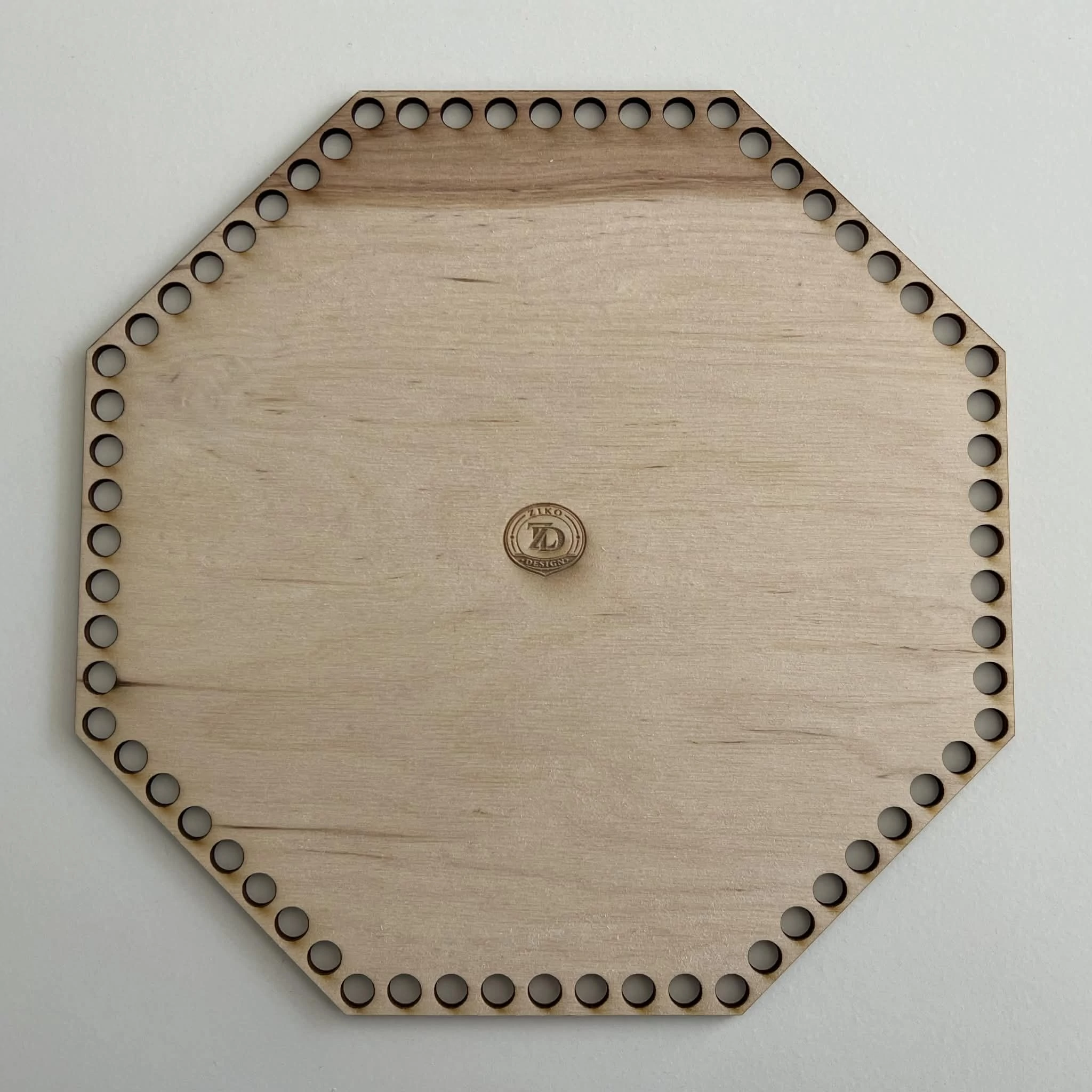 Ez a nyolcszögletű horgolható fa alap tökéletes választás nagyobb méretű kosarak, tárolók vagy dekorációk készítéséhez.