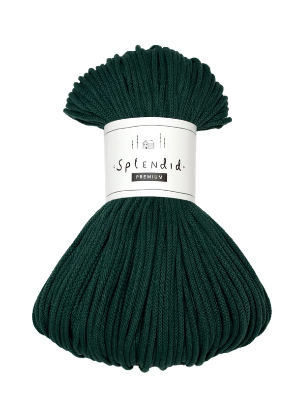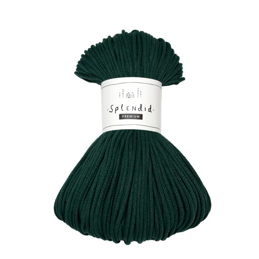 Az 5 mm-es prémium Splendid zsinórfonal  újrahasznosított pamutból készül, a közepén a színével azonos pamut “maggal”. A minőségi textúra, kiválóan alkalmassá teszi az egyedi technikák alkalmazásával készített horgolt, kötött, vagy makramézott alkotásokhoz.
