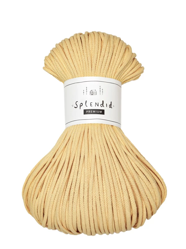 A 3 mm-es prémium Splendid zsinórfonal kizárólag újrahasznosított pamutból készül. A minőségi textúra, kiválóan alkalmassá teszi az egyedi technikák alkalmazásával készített horgolt, kötött, vagy makramézott alkotásokhoz.