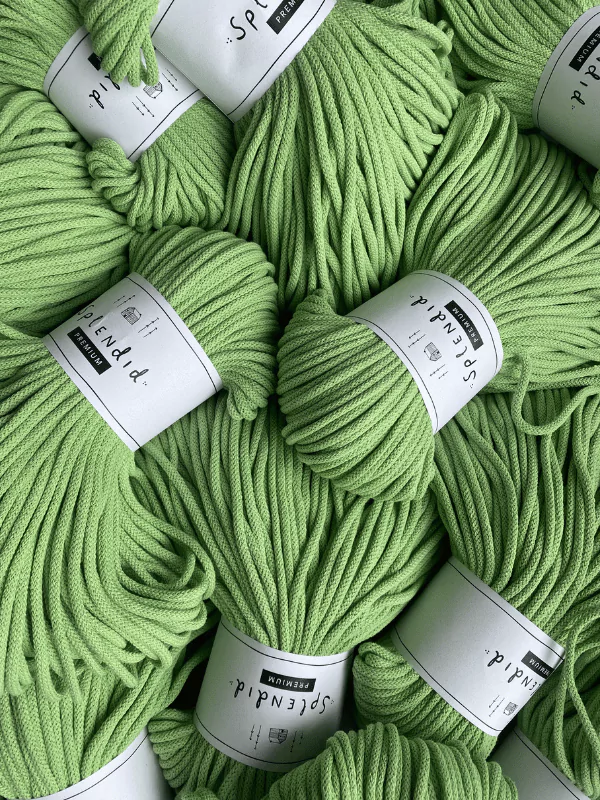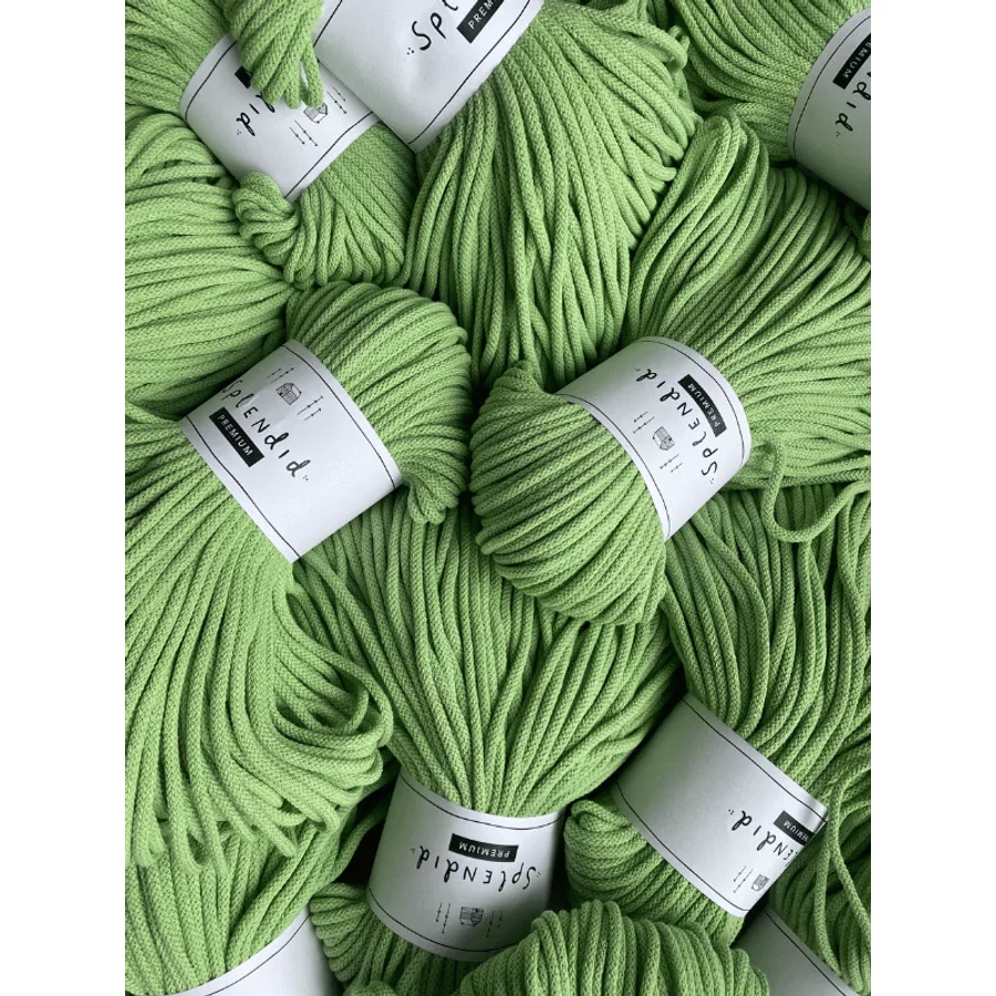 Az 5 mm-es prémium Splendid zsinórfonal  újrahasznosított pamutból készül, a közepén a színével azonos pamut “maggal”. A minőségi textúra, kiválóan alkalmassá teszi az egyedi technikák alkalmazásával készített horgolt, kötött, vagy makramézott alkotásokhoz.
