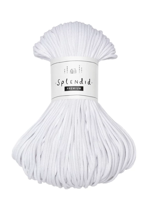 Az 5 mm-es prémium Splendid zsinórfonal  újrahasznosított pamutból készül, a közepén a színével azonos pamut “maggal”. A minőségi textúra, kiválóan alkalmassá teszi az egyedi technikák alkalmazásával készített horgolt, kötött, vagy makramézott alkotásokhoz.