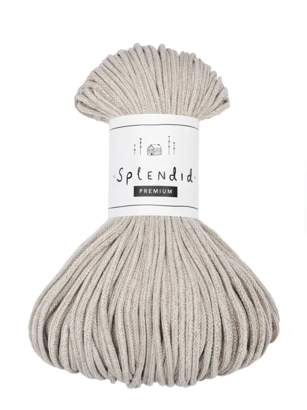 A 3 mm-es prémium (kevert szálas) Splendid zsinórfonal kizárólag újrahasznosított pamutból készül. A minőségi textúra, kiválóan alkalmassá teszi az egyedi technikák alkalmazásával készített horgolt, kötött, vagy makramézott alkotásokhoz.