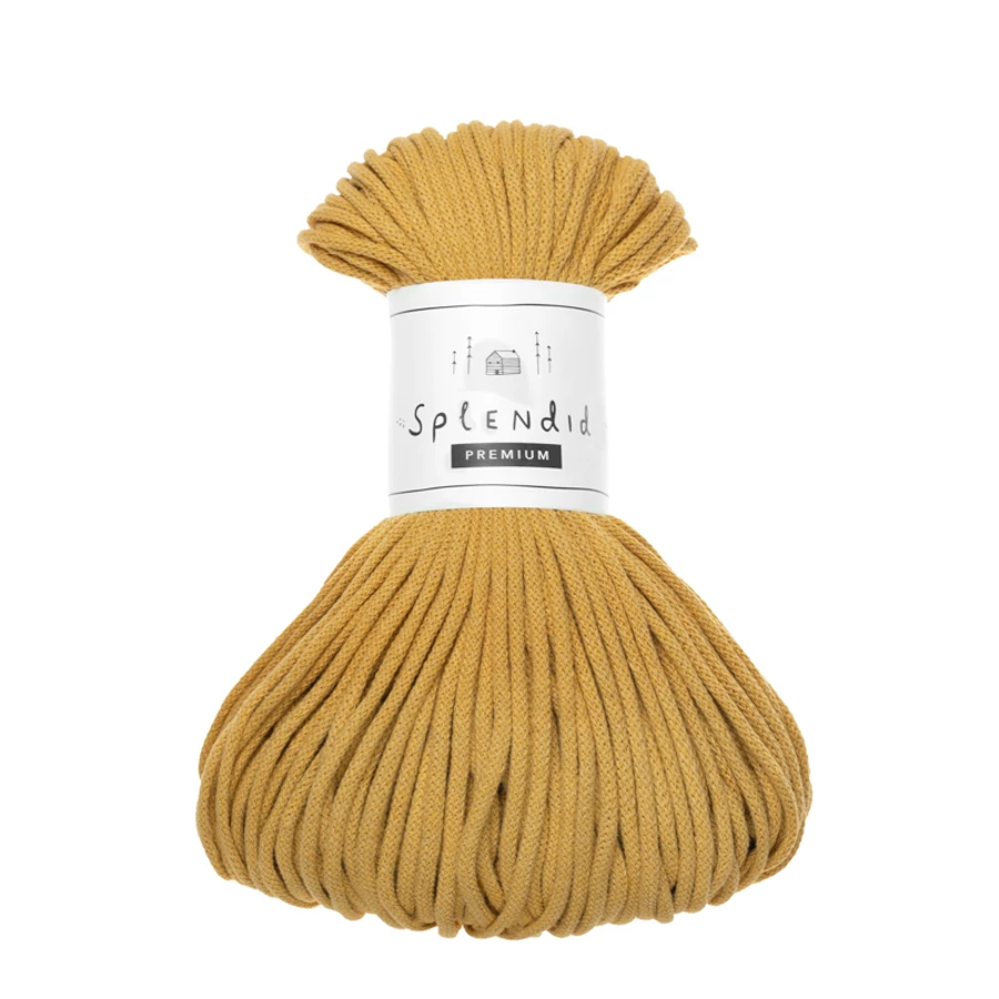 A 3 mm-es prémium Splendid zsinórfonal kizárólag újrahasznosított pamutból készül. A minőségi textúra, kiválóan alkalmassá teszi az egyedi technikák alkalmazásával készített horgolt, kötött, vagy makramézott alkotásokhoz.
