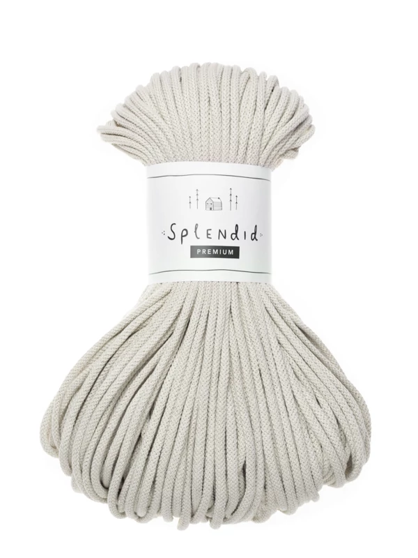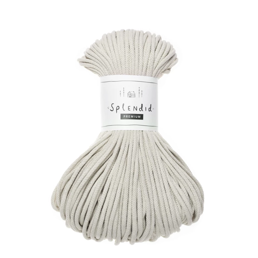 Az 5 mm-es prémium Splendid zsinórfonal  újrahasznosított pamutból készül, a közepén a színével azonos pamut “maggal”. A minőségi textúra, kiválóan alkalmassá teszi az egyedi technikák alkalmazásával készített horgolt, kötött, vagy makramézott alkotásokhoz.