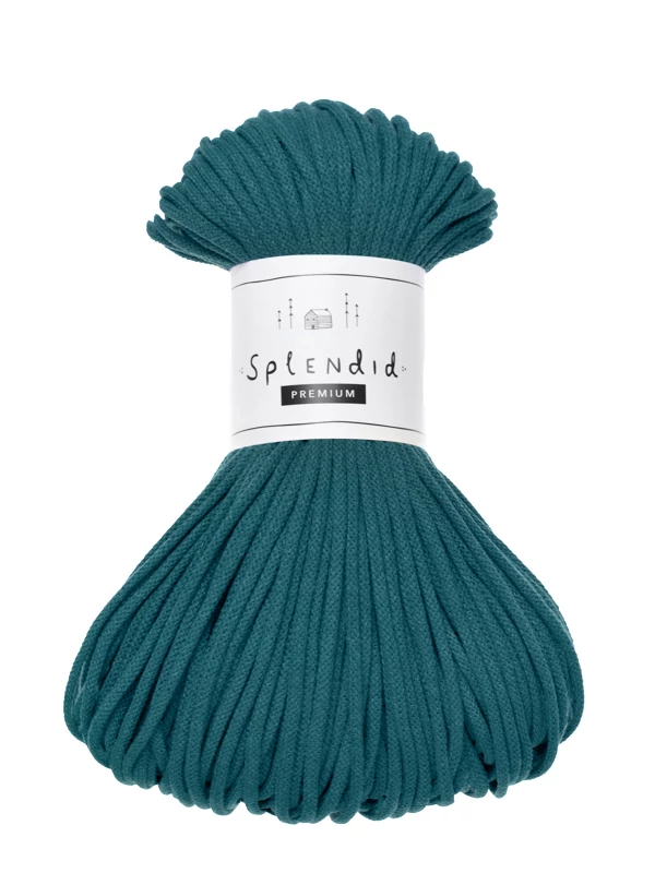 A 3 mm-es prémium Splendid zsinórfonal kizárólag újrahasznosított pamutból készül. A minőségi textúra, kiválóan alkalmassá teszi az egyedi technikák alkalmazásával készített horgolt, kötött, vagy makramézott alkotásokhoz.