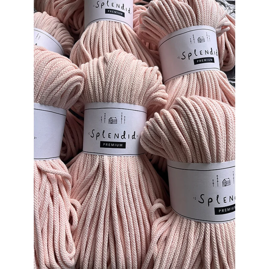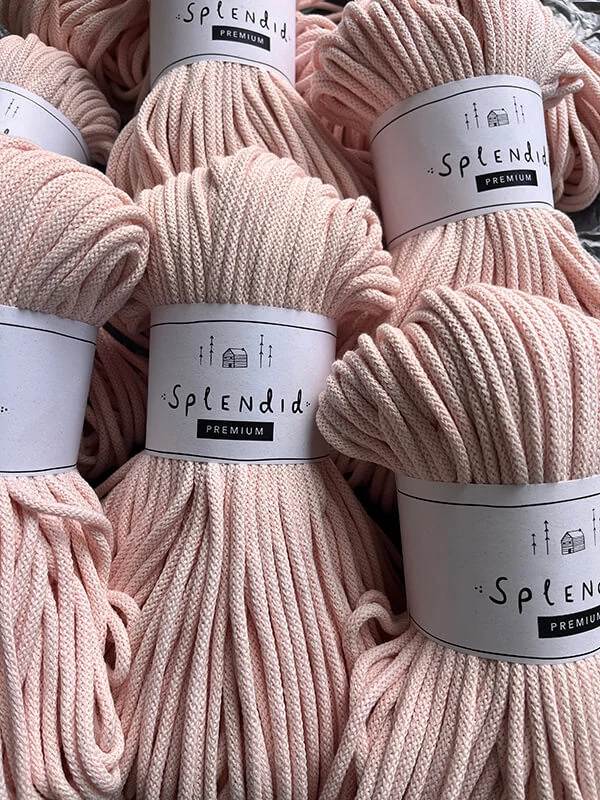 A 3 mm-es prémium Splendid zsinórfonal kizárólag újrahasznosított pamutból készül. A minőségi textúra, kiválóan alkalmassá teszi az egyedi technikák alkalmazásával készített horgolt, kötött, vagy makramézott alkotásokhoz.