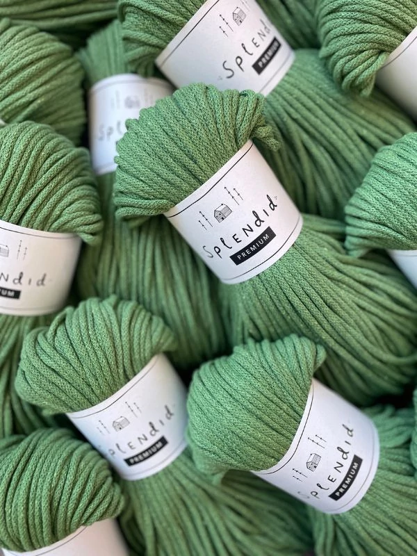 A 3 mm-es prémium Splendid zsinórfonal kizárólag újrahasznosított pamutból készül. A minőségi, egyedi textúra, kiválóan alkalmassá teszi az egyedi technikák alkalmazásával készített horgolt, kötött, vagy makramézott alkotásokhoz.