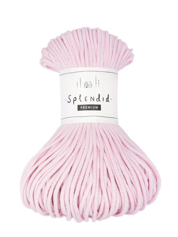 z 5 mm-es prémium Splendid zsinórfonal újrahasznosított pamutból készül, a közepén a színével azonos pamut “maggal”. A minőségi textúra, kiválóan alkalmassá teszi az egyedi technikák alkalmazásával készített horgolt, kötött, vagy makramézott alkotásokhoz.
