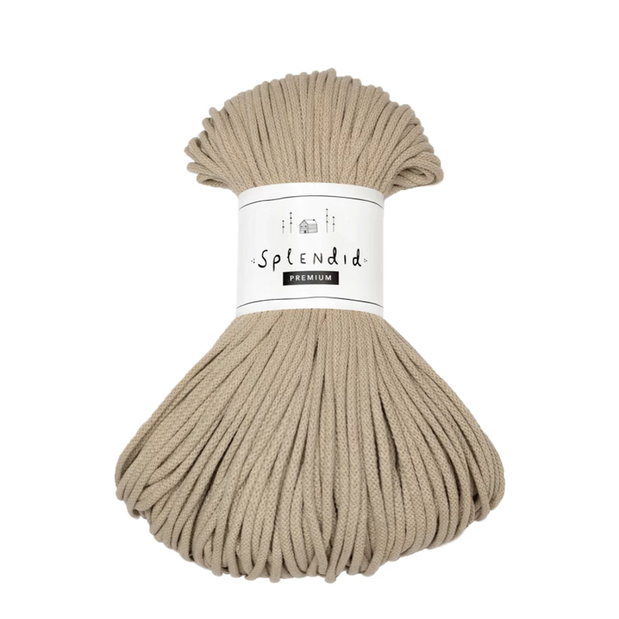 Az 5 mm-es prémium Splendid zsinórfonal  újrahasznosított pamutból készül, a közepén a színével azonos pamut “maggal”. A minőségi textúra, kiválóan alkalmassá teszi az egyedi technikák alkalmazásával készített horgolt, kötött, vagy makramézott alkotásokhoz.